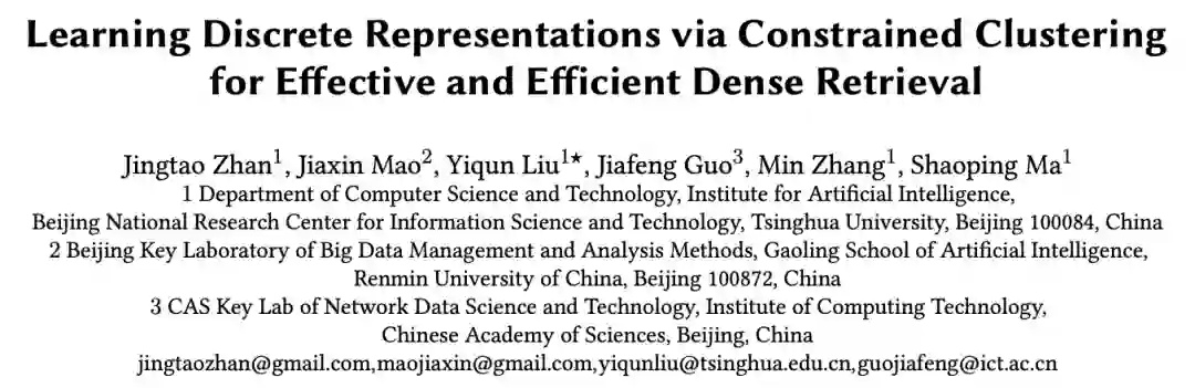 据大会官网信息,清华大学获得今年WSDM唯一最佳论文奖的工作是“Learning Discrete Representations via Constrained Clustering for Effective and Efficient Dense Retrieval”(基于有约束聚类的离散表示学习提升稠密向量检索性能)。