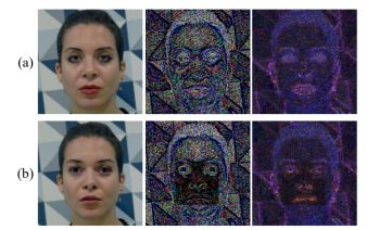 而微软亚洲研究院的 Face X-Ray 换脸鉴别算法,主要针对换脸算法的第三步:图像融合过程。换脸的图像必然是至少两张图像叠加而成,而且可以确定合成图像的中间面部是来源于一张图像,面部周围来源于另外一张图像;研究员们还发现,每一张图像都有一个来自于硬件或软件的特殊噪声标记,这些噪声就像指纹一样,每个都是独一无二的。因此,Face X-Ray 通过确定图像是否包含两种不同的噪声,就能判定一张人脸图像为合成图像的机率。