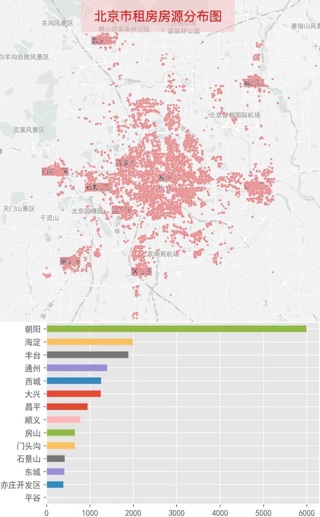 租房分布,也就是租房房源都在城市的哪个区域更多。