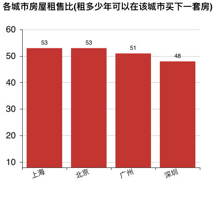 可见,按照北上广深当前的房价,50年左右的租金可以在城市买下一套房。其中深圳最低,只需要48年(也就意味着深圳的小伙伴们心头最痛)。