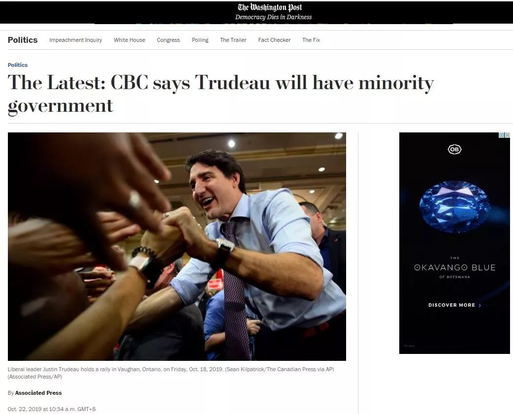 不过,CBC预计,特鲁多领导的自由党不会赢得议会的多数席位,需依靠其他政党组建政府。