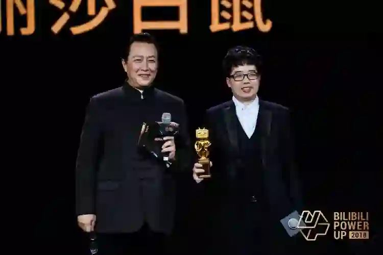 在 BILIBILI POWER UP 2018 颁奖典礼上,哔哩哔哩找了唐国强给鬼畜他的 UP 主“伊丽莎白鼠”颁了奖。