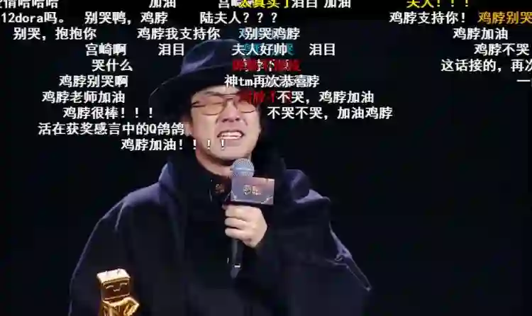 甚至在主持人告诉他可以不念颁奖词直接回答问题的情况下,他还是回应了台下 UP 主们喊出的要求,念出了给“伊丽莎白鼠”的颁奖词: