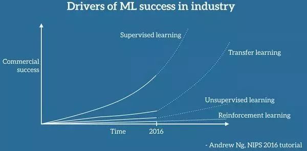 斯坦福大学教授Andrew Ng在他广受欢迎的NIPS 2016教程中表示,迁移学习将会继监督学习之后成为机器学习商业成功的下一个推动力。