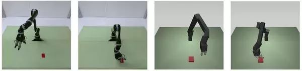 仿真以关键角色出现的另一个应用是机器人技术:用真正的机器人去训练模型不仅慢,而且训练成本也很昂贵。而从模拟中学习之后在将习得的知识迁移到真实世界中一定程度上缓解了这一问题,这也使得它在近期得到了更多的关注[8]。下图分别展示了机器人在真实世界和仿真中完成操作任务的图像。
