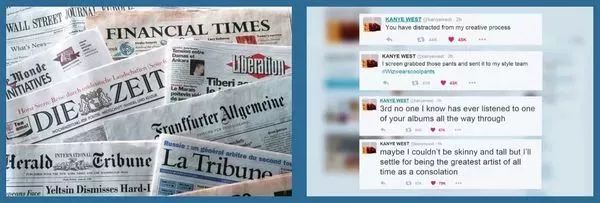 另一个常见的域适应的场景是适应不同的文本类型:标准的NLP工具(词性标注器或解析器)通常在华尔街日报等新闻数据(曾经被用于评估这些模型)上进行训练。然而,在新闻数据上训练得到的模型在面对来自像Twitter一样的社交媒体中新的文本类型时就显得力不从心了。