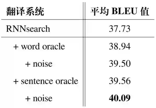 3. 在NMT训练阶段,我们以一定的概率从前一步的参考译文词语和模型自身预测出的1-best词语之间采样,1-best词语的确定包括词语级别和句子级别的最优,这样做使模型在训练时尽量考虑测试时的环境。