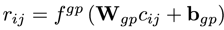 该函数用于推导两个对象之间的关系,其中i和j分别表示序列中第i个和第j个对象,g和f表示带有可训练参数的函数。