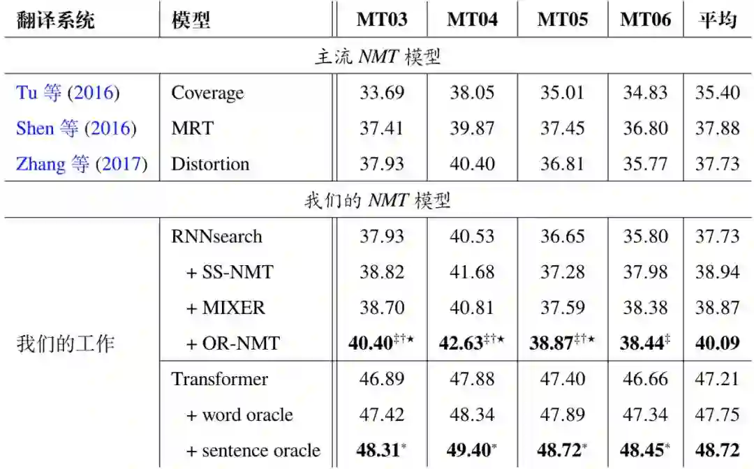 我们在WMT’16数据集上与相关工作的实验结果如下: