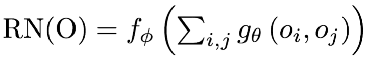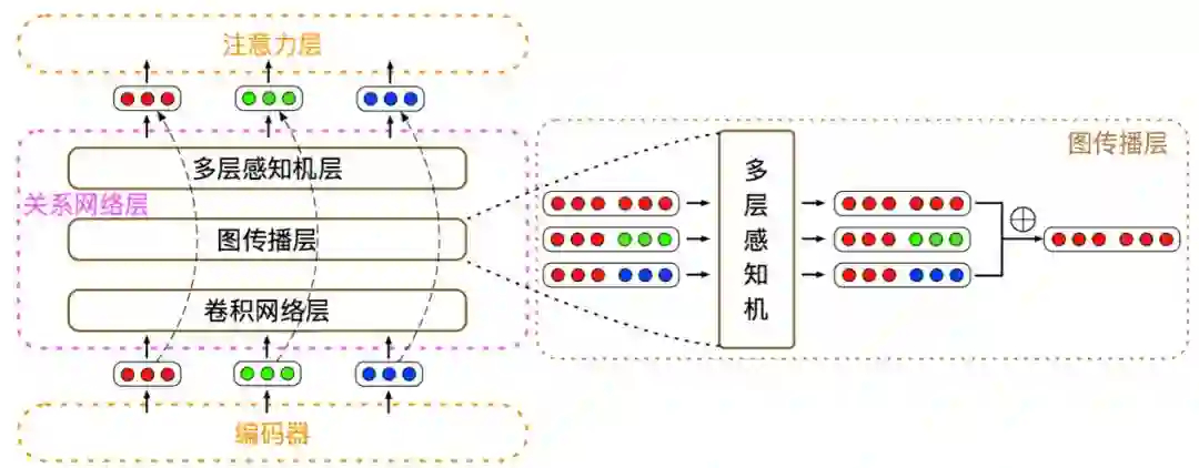 我们的方法借鉴了关系网络。Santoro等于2017将关系网络(Relation Network,简称RN)应用于问答系统做关系推导,捕捉两个物体之间的关系。