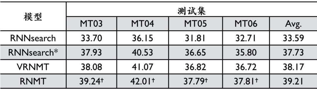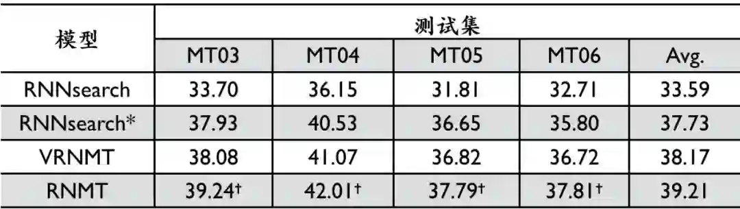 消融实验在NIST中英数据集上的结果如下表所示,其中BLEU值为所有测试集上平均值: