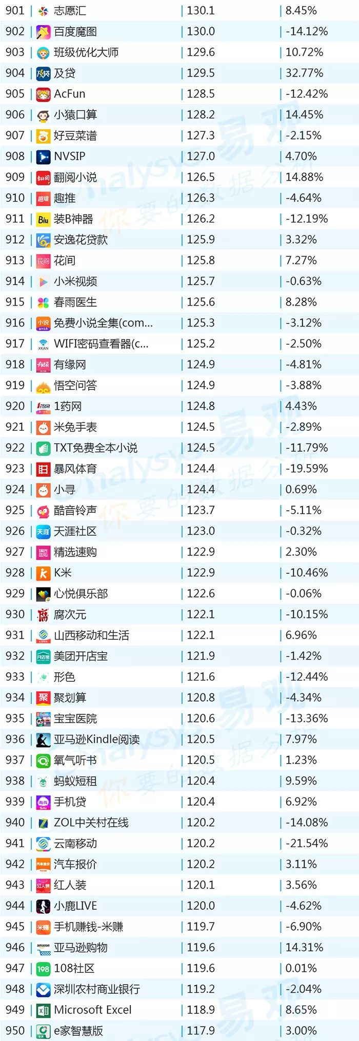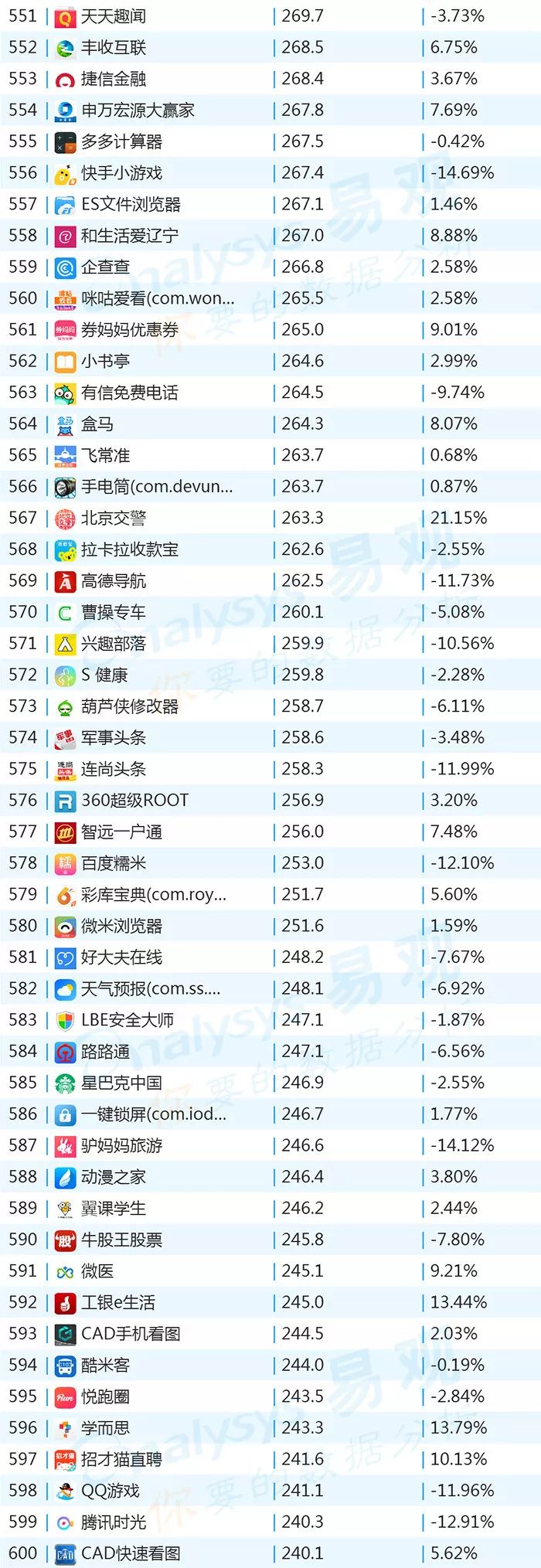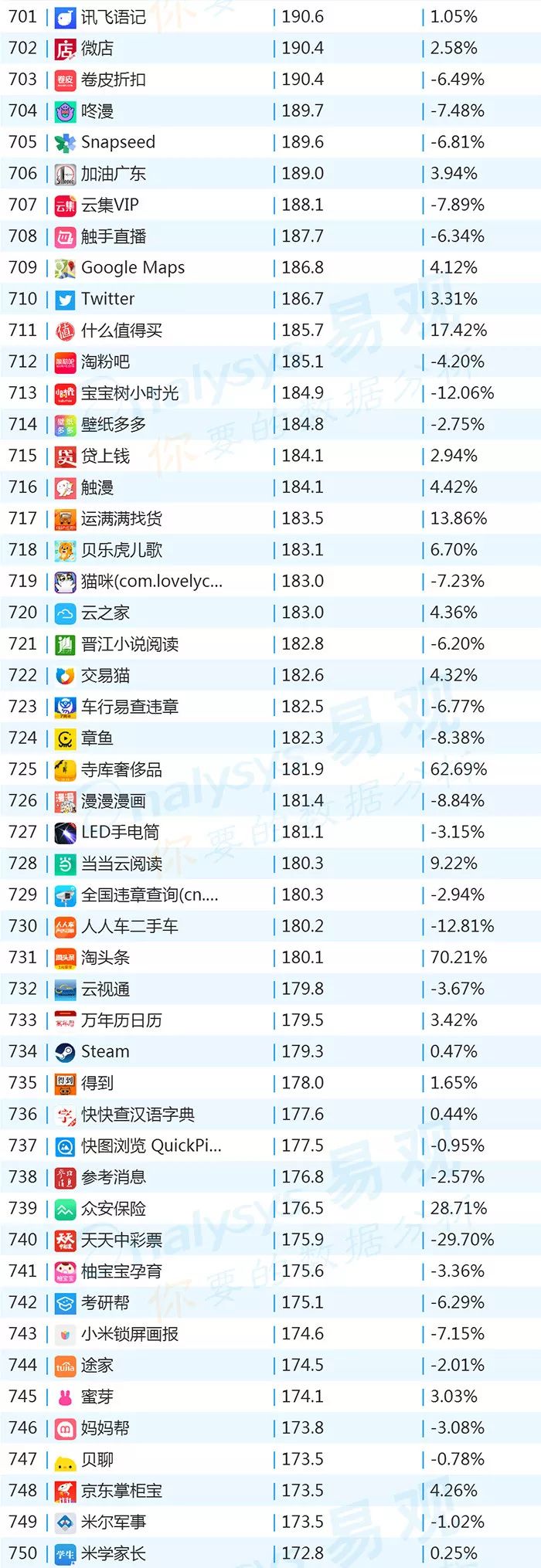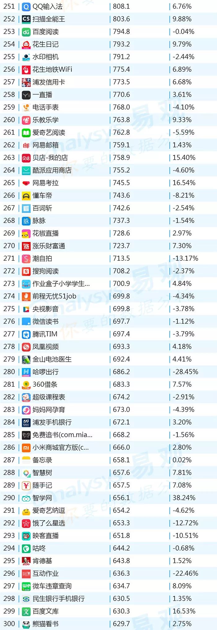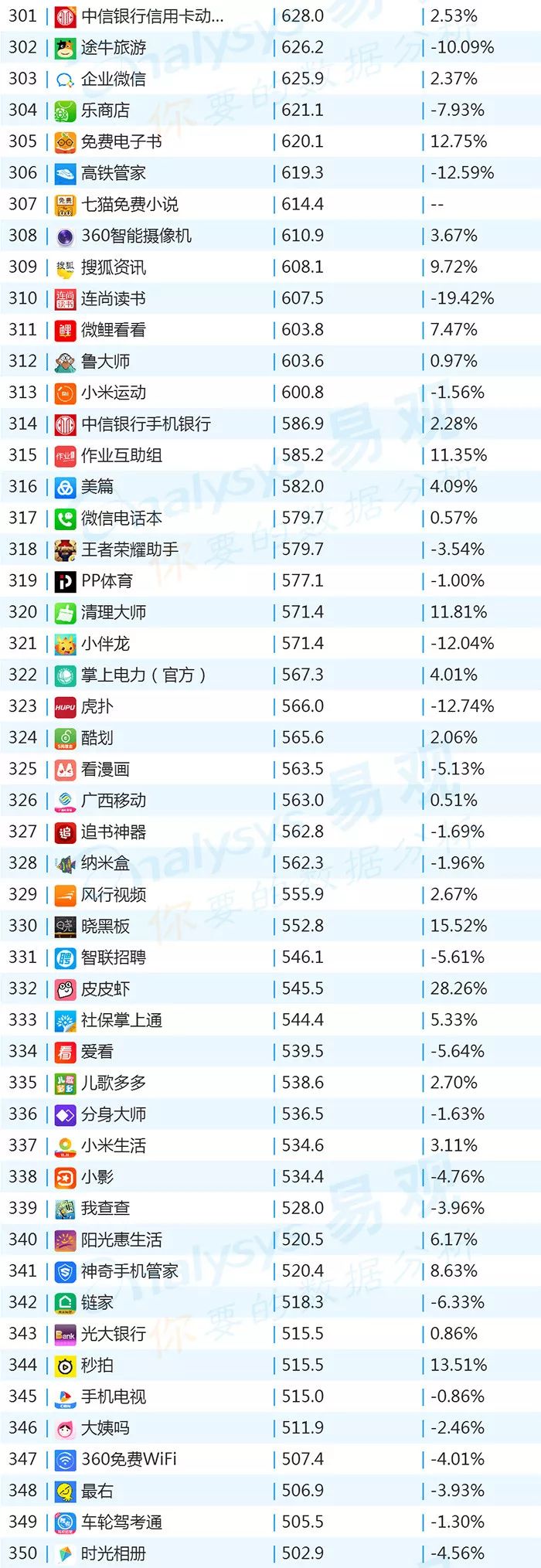 双11的“发起人”阿里,其旗下产品可谓在该月赚足了风头,尤其是淘宝可以说是当之无愧的最大赢家。其在TOP1000榜单排名中,淘宝由10月的第四名一跃成为榜单第二名,月活规模超过了QQ和爱奇艺,表现亮眼。