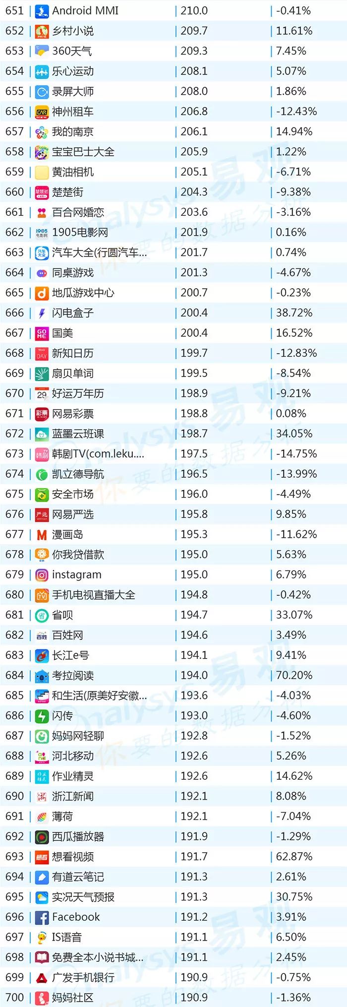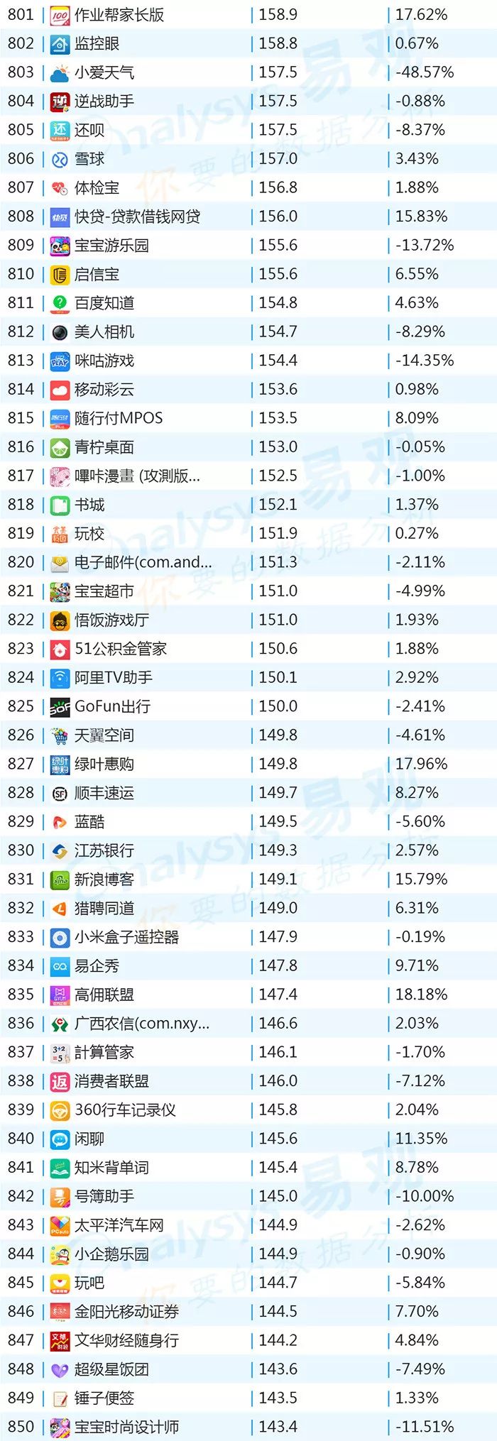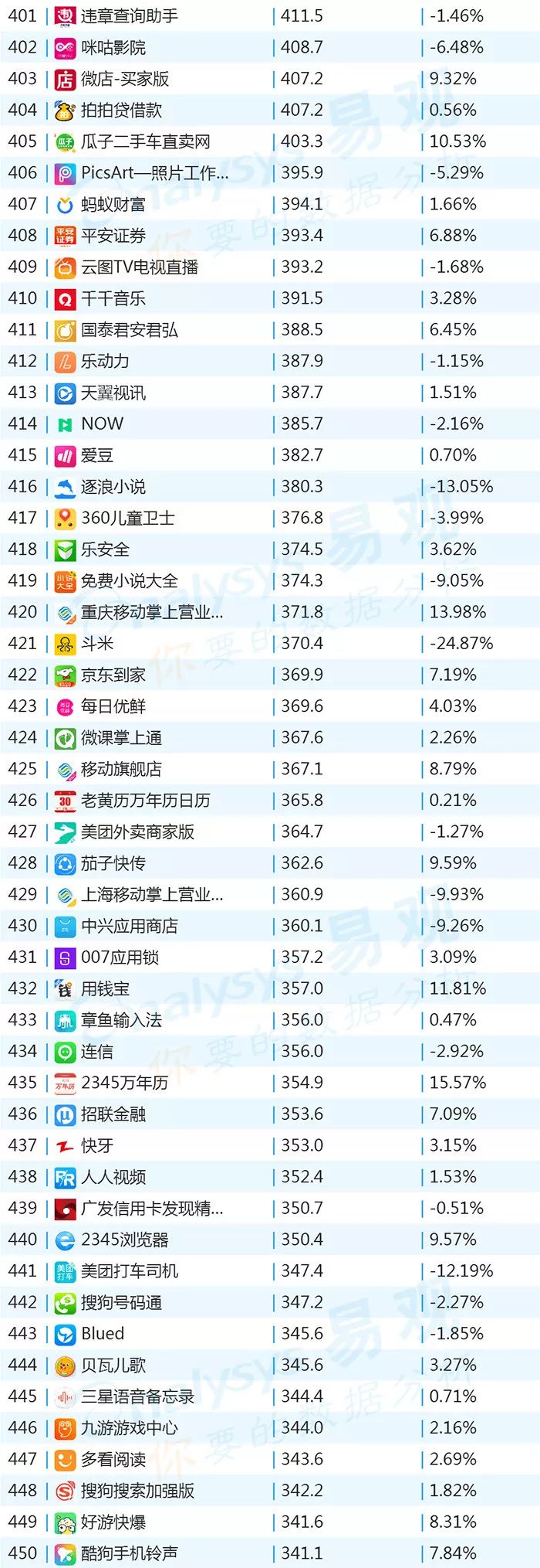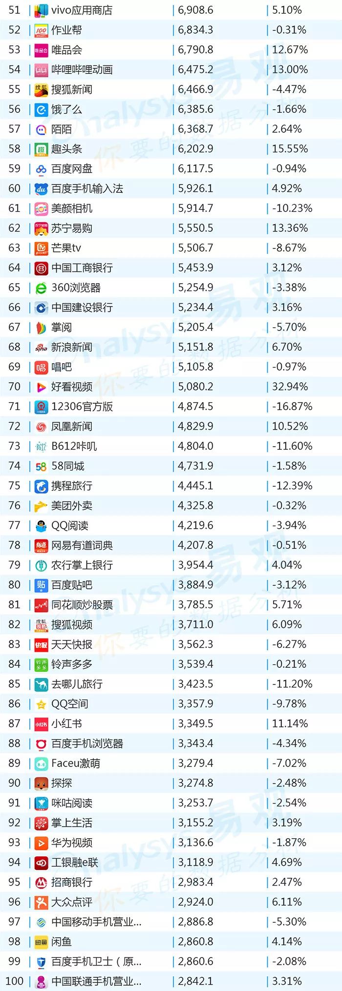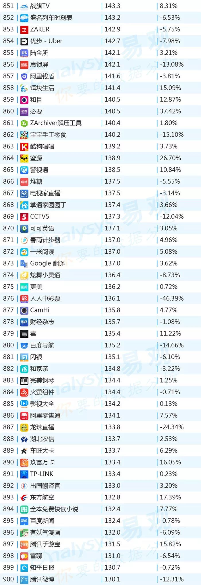 双11的“发起人”阿里,其旗下产品可谓在该月赚足了风头,尤其是淘宝可以说是当之无愧的最大赢家。其在TOP1000榜单排名中,淘宝由10月的第四名一跃成为榜单第二名,月活规模超过了QQ和爱奇艺,表现亮眼。