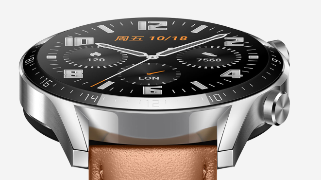 HUAWEI WATCH GT 2 相比较上一代的外观变化主要是升级了触碰面的边框以及采用了一体化的3D玻璃表面,观感上与传统智能手表相比要更有特点一些。