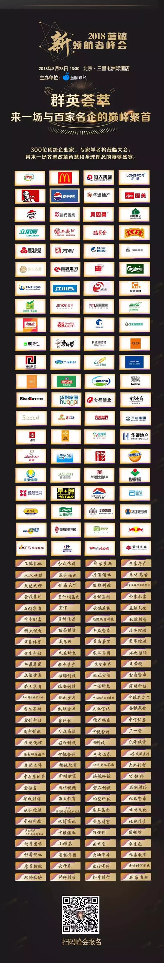 报名及详情请见:2018蓝鲸新领航者峰会专题http://app.lanjinger.com/special/13。具体参会企业名录见下图: