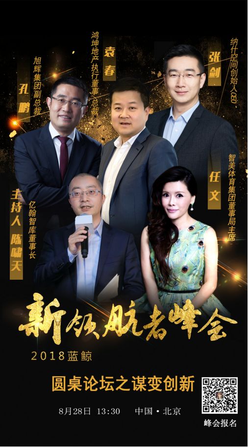 在蓝鲸财经2018新领航者峰会“谋变创新”论坛上,亿翰智库董事长陈啸天、鸿坤地产总裁袁春、旭辉集团副总裁孔鹏、智美体育董事局主席任文、纳什空间创始人CEO张剑等意见领袖将与您一起追寻时代变化的印记,探索未来转型的风口。