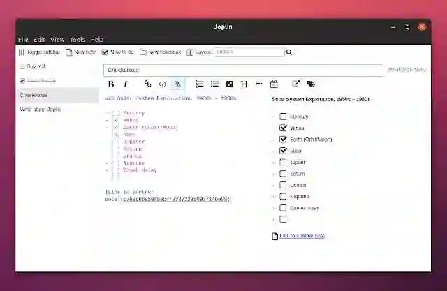 Joplin 带有显示复选框和指向另一个笔记链接的隐藏侧边栏