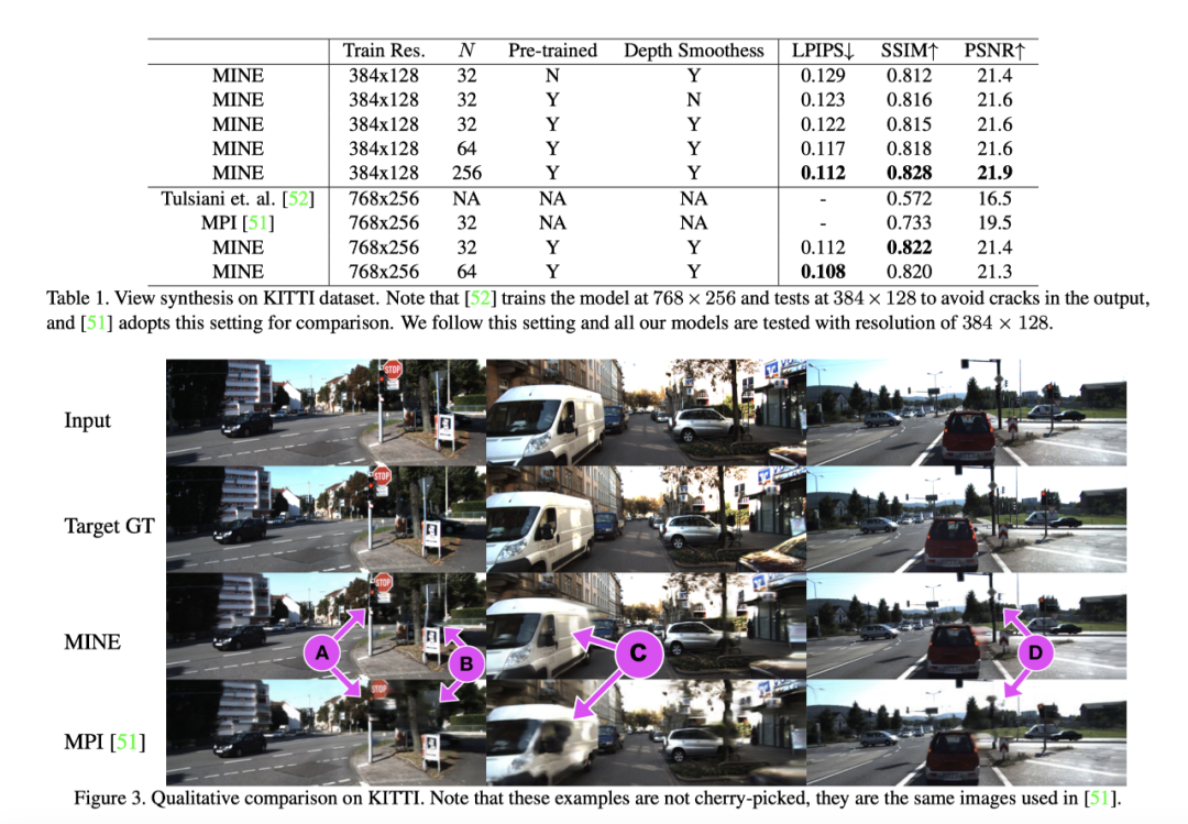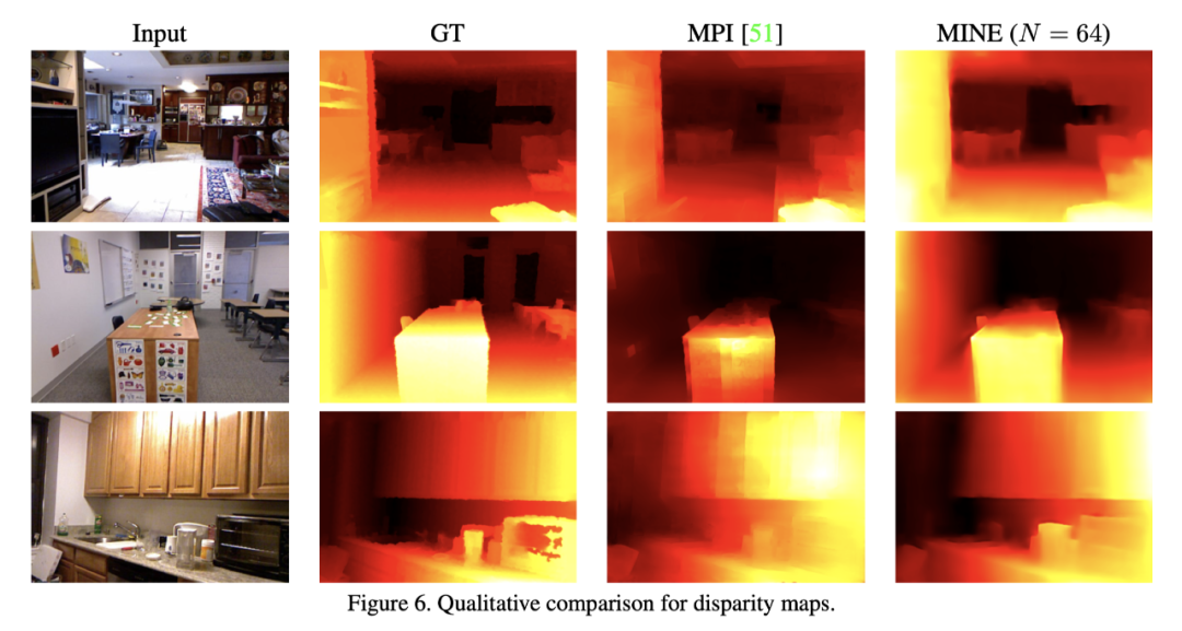 与 NeRF 的逐点渲染相比,MINE 的渲染非常高效;