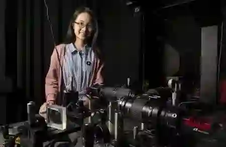 ▲论文一作辛书冕在卡耐基梅隆大学光学实验室。Image Credit: CMU