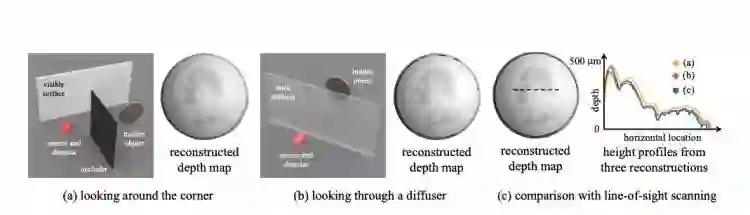 这篇论文的标题听上去十分晦涩,但它实际上探讨了一个极为重要的问题:目前的计算机视觉能够清楚地看到在视野 (line of sight) 之内的物体;而对于人类来说,即便一个物体在拐角背后,无法看到完整面貌,也可以透过物体在其它表面上的反射、漫射投影,以及在直觉的帮助下,猜出物体是什么、长什么样。