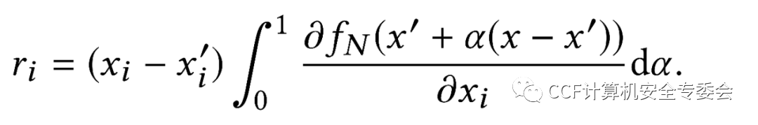 Integrated Gradients (IG) 方法[3]则在此基础上引入了基线(比如一个零向量),计算从x到基线的最短距离,随后计算xi的梯度在路径上的累积值,作为xi的相关性,