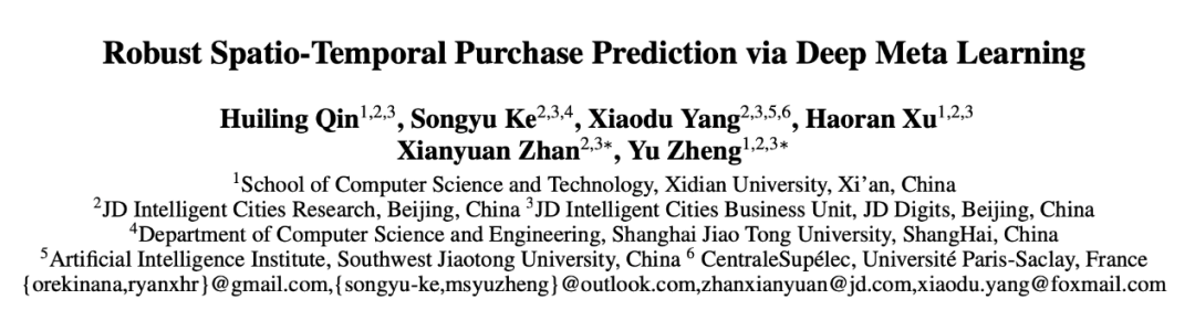 在2020年12月收录的AAAI 2021(CCF-A类)上,京东城市被收录了一篇名为《Robust Spatio-Temporal Purchase Prediction via Deep Meta Learning》的论文。该论文研究了如何通过深度元学习,结合城市中的各项信息以及历史的销量数据,对未来,特别是大型购物节期间,城市中各个区域不同时间段的销量进行预测。