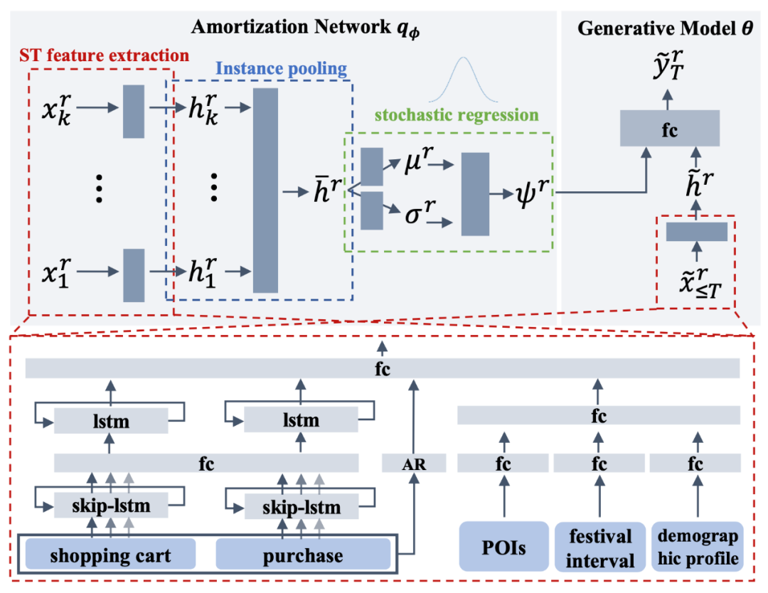 作者将该预测任务分为主要三个部分:1)利用时空元学习推理,对不同的时空区域生成对应的时空表示。2)学习不同时空区域间的共享信息,同时结合区域特定的时空表示,得到更加可靠的预测销量。3)通过时空交替训练使得模型在空间以及时间层面都能够得到更加完善的学习。