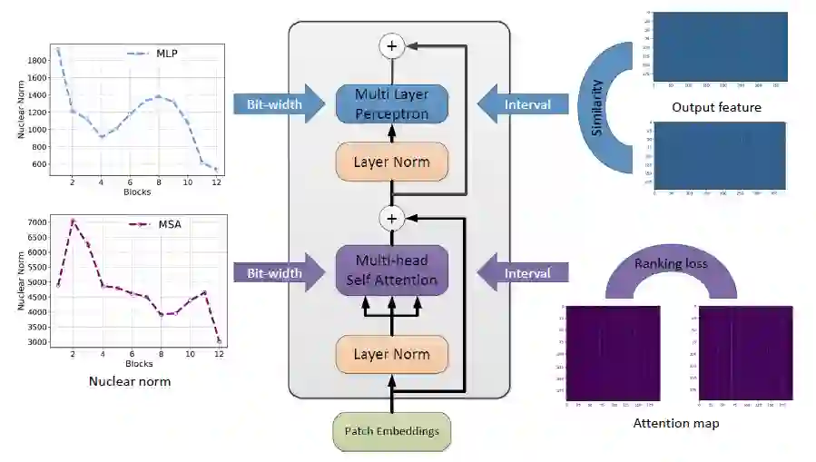 研究者提出使用 MSA 模块中注意力层特征和 MLP 中输出特征矩阵的核范数来作为度量网络层「敏感度」的方法