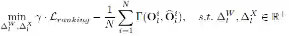 自注意力层是 Transfomer 结构中十分重要的部分,也是 Transformer 与传统卷积神经网络不同的地方。对于自注意力层,研究者发现量化使得注意力特征的相对顺序变得不同,会带来很大的性能下降。因此,他们在量化过程中引入了一个排序损失: