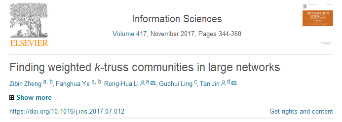 实验室论文 “Finding Weighted K-Truss Communities in Large Networks”被期刊Information Sciences录用。Information Sciences期刊的最新影响因子为4.832。