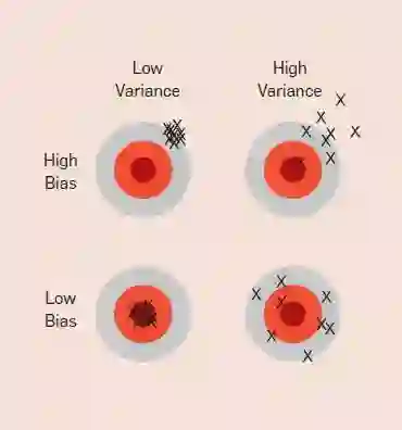例如,线性学习器具有较高的偏差,因为当两个类之间的划分不是一个清晰的超平面时,学习器无法正确地推导出某种关系。决策树没有这个问题,因为它们的学习方法很灵活。但另一方面,它们可能会有较高的方差, 在同一任务的不同训练数据集上学习的决策树通常区别很大,虽然实际上它们应该是相同的。