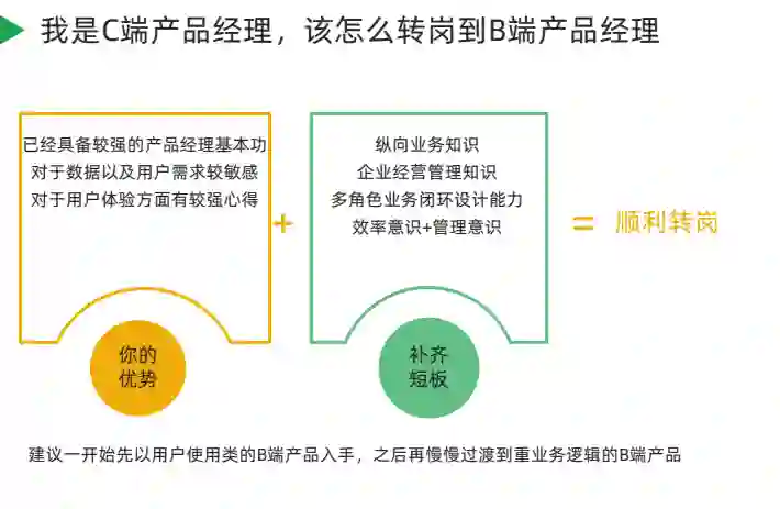 对于想转岗B端的同学而言,转岗不会归零,过往经验是可以复用和发挥优势的。