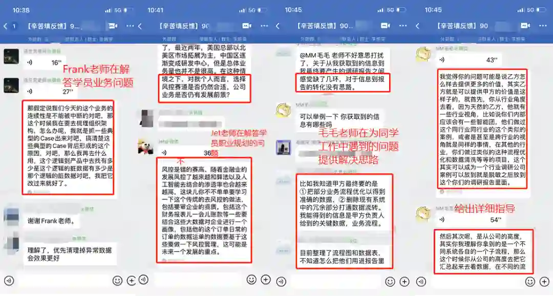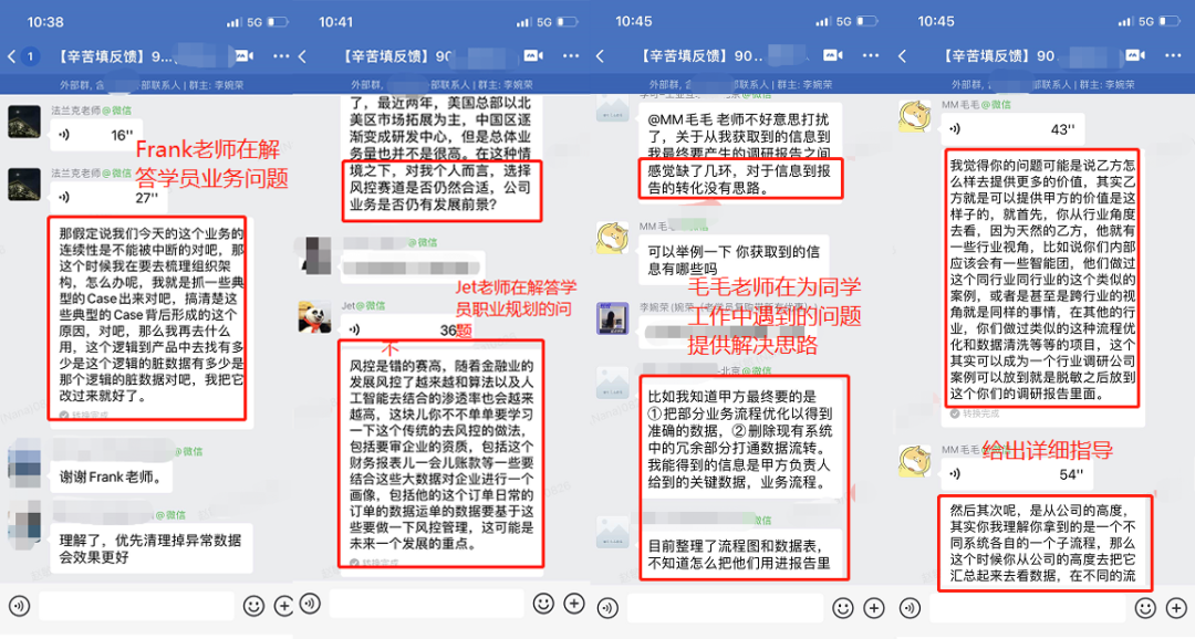 课程的主讲导师,每周会在班级群里给大家专门开小灶,通过语音直播的形式,帮助大家解决在工作中的具体产品/业务问题