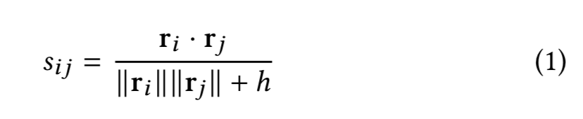 ItemKNN:基于K最近邻算法的一种推荐算法,衡量指标是物品之间的距离,因此是基于相似物品的推荐算法。首先通过TF-IDF或BM25算法获取每个物品对每个用户的隐式评分(评价向量,rating vector,可以简单理解为该用户对该物品的需求程度),然后按照以下公式计算两个物品之间的距离: