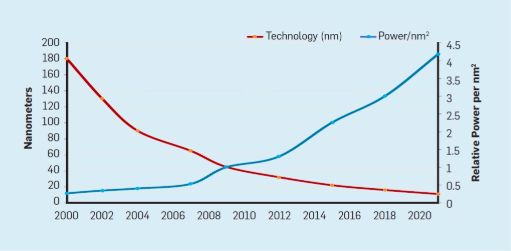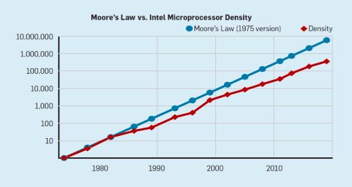 尽管摩尔定律已经存在了几十年(见图2),但它在2000年左右开始放缓,到2018年,摩尔的预测与目前的能力之间的差距大约是15倍。目前的预期是,随着CMOS技术接近基本极限,差距将继续扩大。