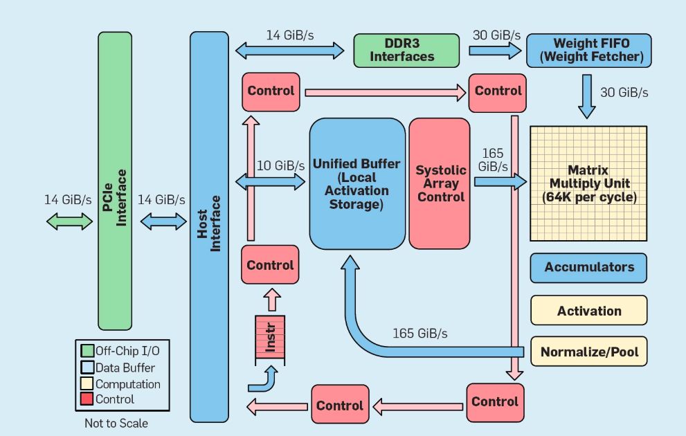 如图8所示,TPU的组织架构与通用处理器完全不同。