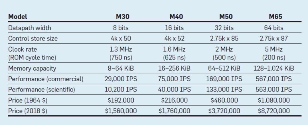 图1 IBM 360系列机型的参数,IPS意为“每秒操作数”