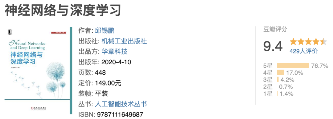 豆瓣评分9.4、Github star 1万+的深度学习基础教程《神经网络与深度学习》(即蒲公英书)由复旦大学计算机学院教授、博导邱锡鹏所著,邱神依托自己在复旦教授的同名课程,课书一体坚持打磨数年。