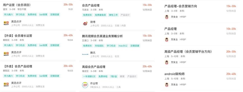会员运营、会员产品经理等会员相关岗位缺口巨大。工作3-5年的会员岗,美团点评、新浪微博、腾讯都开到了20-40K的薪水。即使在同一家公司,同样是3-5年的产品经理,会员方向的薪水也高出了5-10K。会员相关岗位的薪资已经与程序员一样,成为互联网行业薪资最高的群体,而且有很大的发展空间。