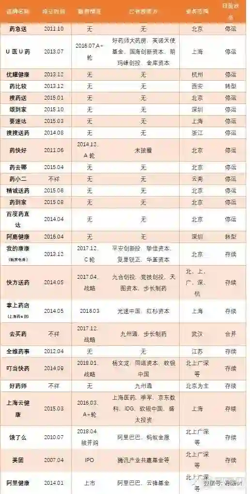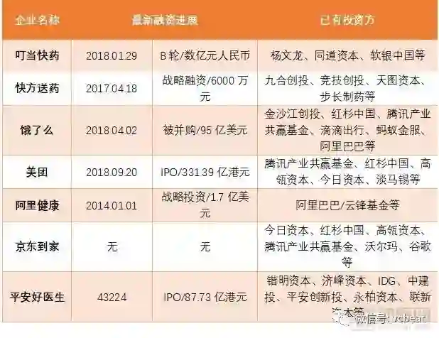 美团点评、饿了么、阿里健康、京东到家、平安好医生等平台或者自身为“独角兽”,或者是大平台在医药领域的细分业务,自然更加不缺资源。