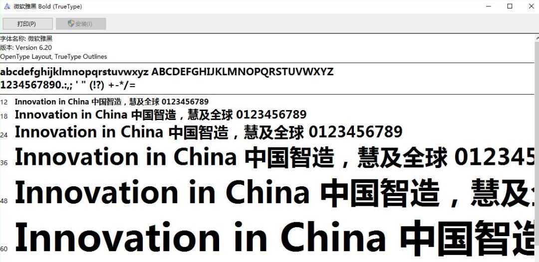 “微软雅黑”字体是“北大方正电子有限公司”设计开发的字体作品。该字体与“方正兰亭黑系列字体”系出同源,前者针对屏幕显示,后者针对印刷用