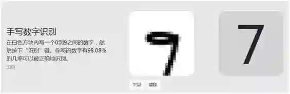 第零节「体验人工智能」从最基础的视觉任务——识别手写数字开始,读者可以在下图中的白色方框区域写出任意形状的数字,然后点击「识别」查看识别结果。