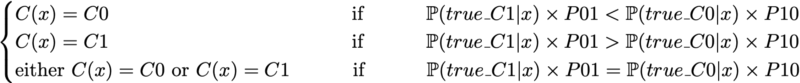 其中 C(.) 定义分类器函数。因此,如果我们想要最小化期望预测成本,理论最佳分类器 C(.) 最小化