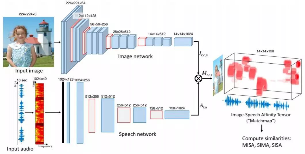 问题是,在训练过程中,模型无法获取语音和图像之间的任何真实对齐信息。Harwath 说,「该论文的最大贡献是,通过简单地教导网络哪些图像和描述属于同一组,哪些对不属于同一组,证明了这些跨模态(视-听)信息可以自动推断对齐。」