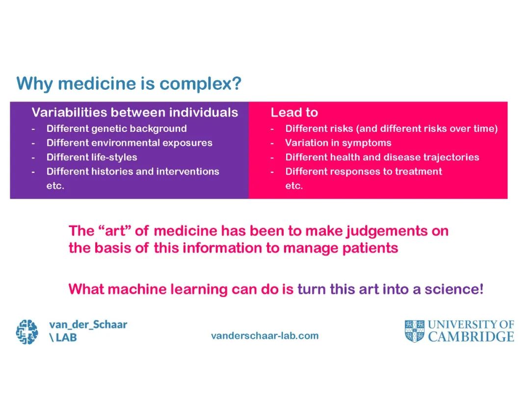 医学与机器学习(ML)可以应用的其他领域不同。我们已经看到了其他领域的进步是由大量数据驱动的,是医学的复杂性,而不是数据量,使挑战变得如此艰难。但与此同时,对于那些真正有兴趣探索ML边界的人来说,这使医学成为最令人兴奋的领域,因为我们要形式化和解决现实世界的问题。这些解决方案具有重要的社会意义,它们可能会影响我们所有人。