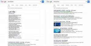 在谷歌上搜索"Let it Be" 和 "Let it Go" 歌词的搜索结果截图