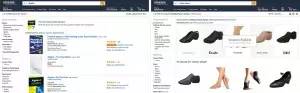 在亚马逊搜索“代数”和“舞鞋”的不同结果的截图