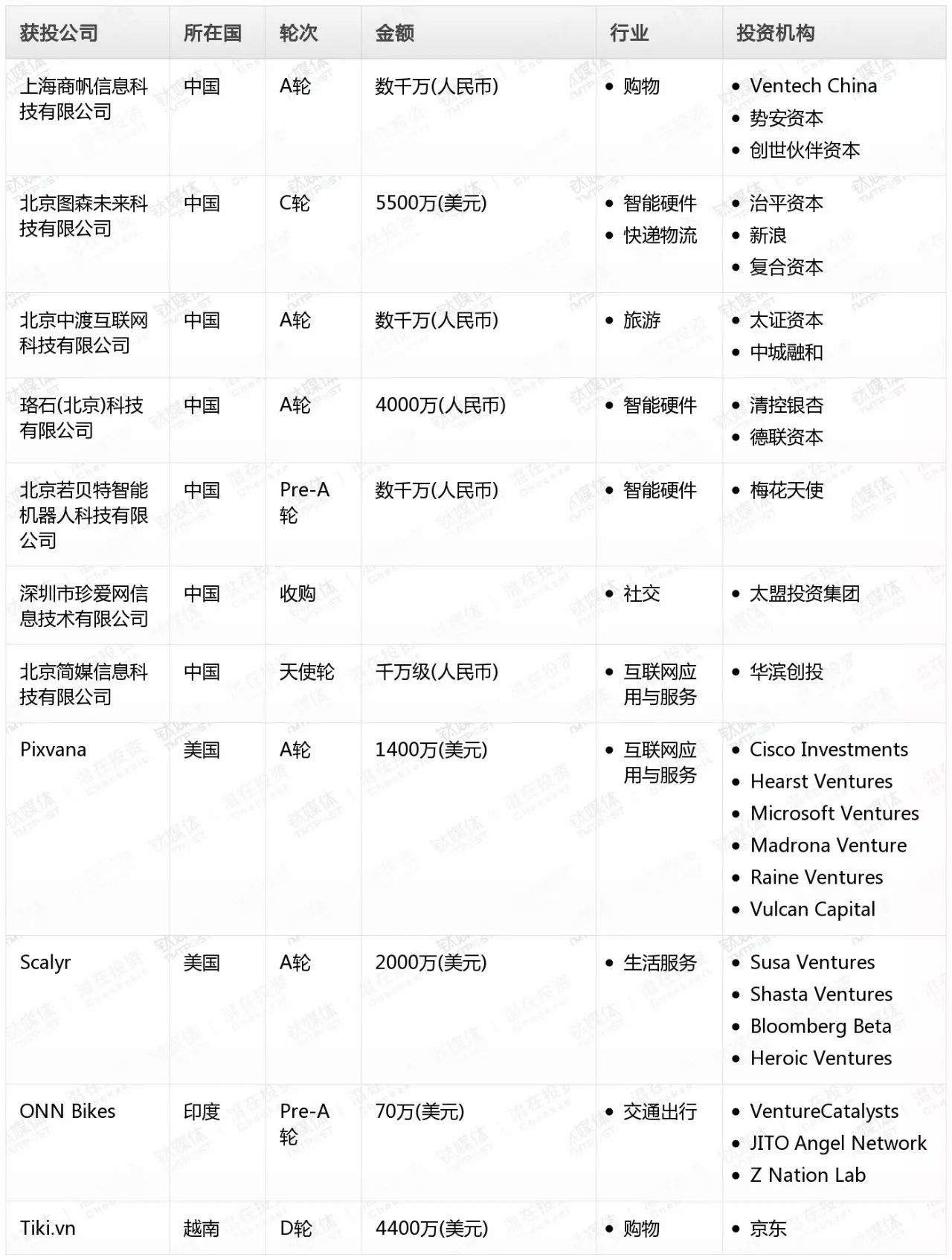 表:2017年11月21日 海内外科技领域投融资事件(钛媒体Pro制表)