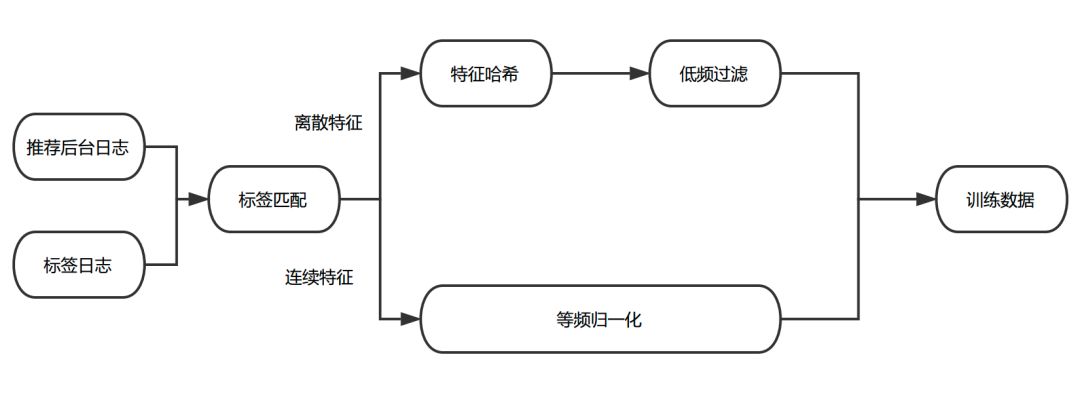 推荐后台日志会记录当前样本对应的User特征、Item特征与Context特征,Label日志会捕获用户对于推荐项的行为反馈。我们把两份数据按照唯一ID拼接到一起,生成原始的训练日志。