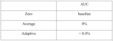 通过离线调研,对于提升模型的训练效果,自适应学习特征缺失值的方法要远优于取零值、取均值的方式,模型离线AUC随训练轮数的变化如下图所示: